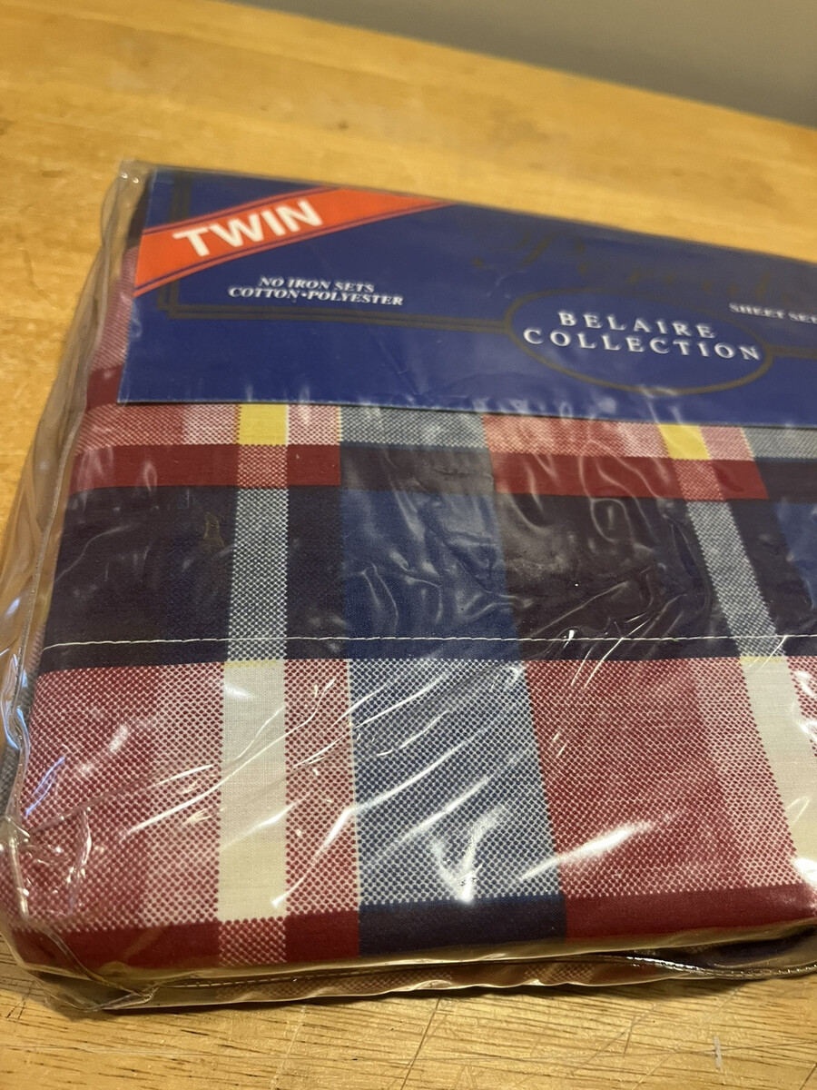 Percale Vintage Twin Sheet Sets Checked Blue Red Tommy Combed Cotton Pike Ind.