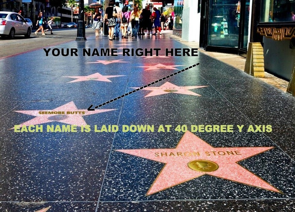 HOW ABOUT YOUR PERSONAL NAME ON A PRESTIGIOUS STAR ON THE FAMOUS HOLLYWOOD WALK OF FAME WE WILL PUT YOUR NAME OR ANY NAME ON THE WALK OF FAME PHOTO PLEASE MAKE SURE TO MESAGE US THE NAME YOU WANT ON THE PHOTO THIS IS A GREAT GIFT IDEA THIS LISTING IS FOR A 8.5 X 11 INCH GLOSSY PHOTO , IF YOU WOULD LIKE OTHER OPTIONS PLEASE MESSAGE ME AS I ENLARGE, FRAME AND HAVE OTHER OPTIONS FOR THIS PHOTO THRU MY STORE. IF YOU DONT SEE THE SIZE YOU WANT OR NEED, PLEASE MESSAGE US, WE CAN QUOTE YOU A PRICE FRAMED, WE CAN QUOTE YOU A PRICE IN DIFFERENT COLORS OF FRAME, WE CAN QUOTE YOU A PRICE IN CANVAS, WE CAN QUOTE YOU A PRICE IN COFFEE CUPS, T-SHIRTS, PILLOWS, BLANKETS, IF YOU LIKE THE PICTURE WE HAVE OR DONT HAVE, I CAN PUT IT ON ANYTHING. JUST KNOW ALL SALES ARE THRU SO THAT EACH CUSTOMER IS PROTECTED UNDER THE BUYER / SELLER PROTECTION POLICY.