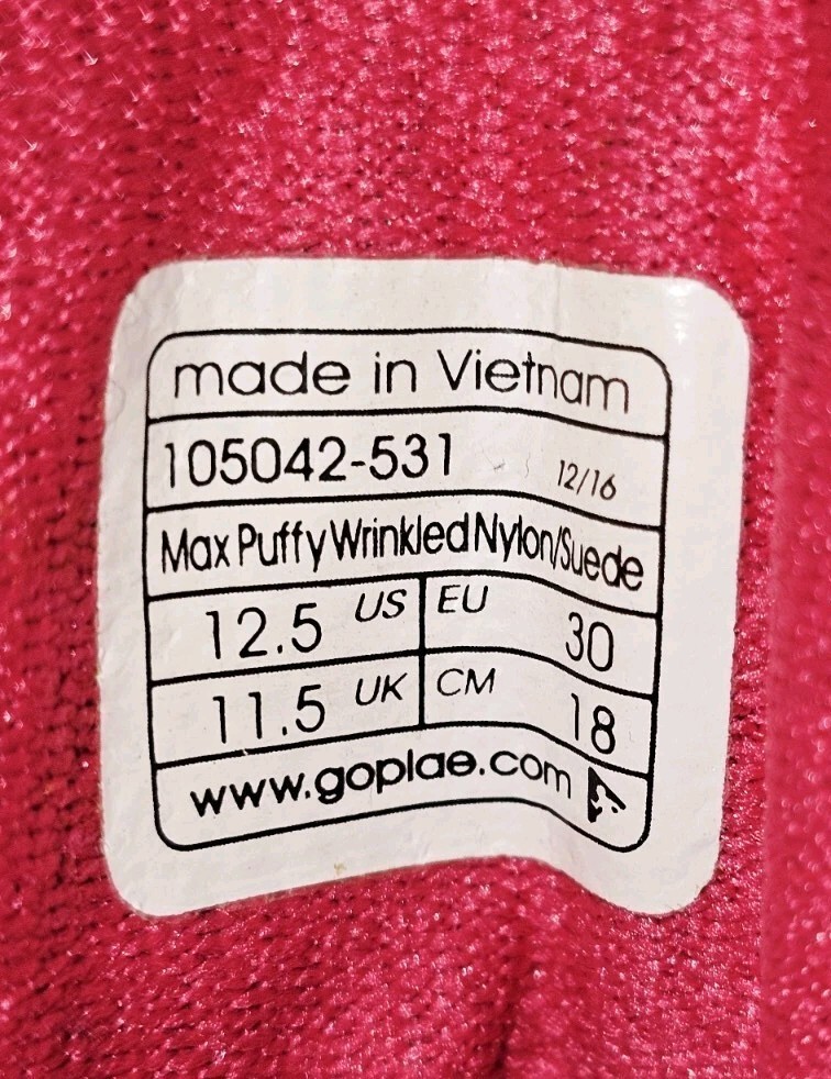 - Plae Max Fun Puffy Wrinkled Aurora Sneakers Shoe Girls Toddler Sz 12.5 High Top