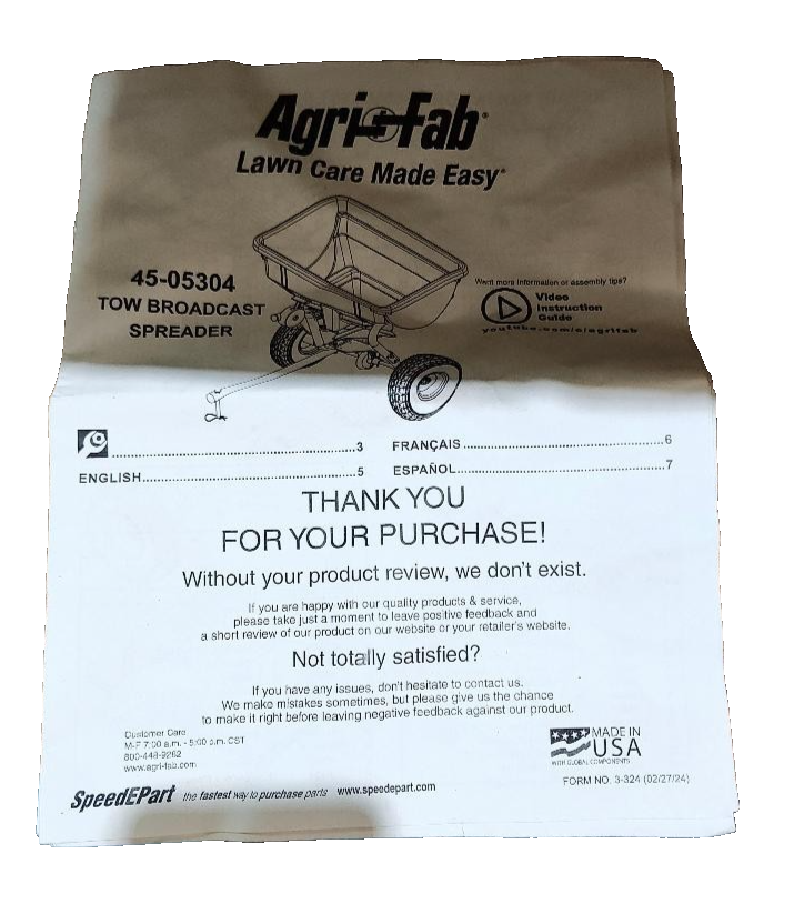 You are buying only "Pneumatic Tires Wheel 2-PACK" For Agri-Fab Spreader, 85 lb. Cap., 45-0530