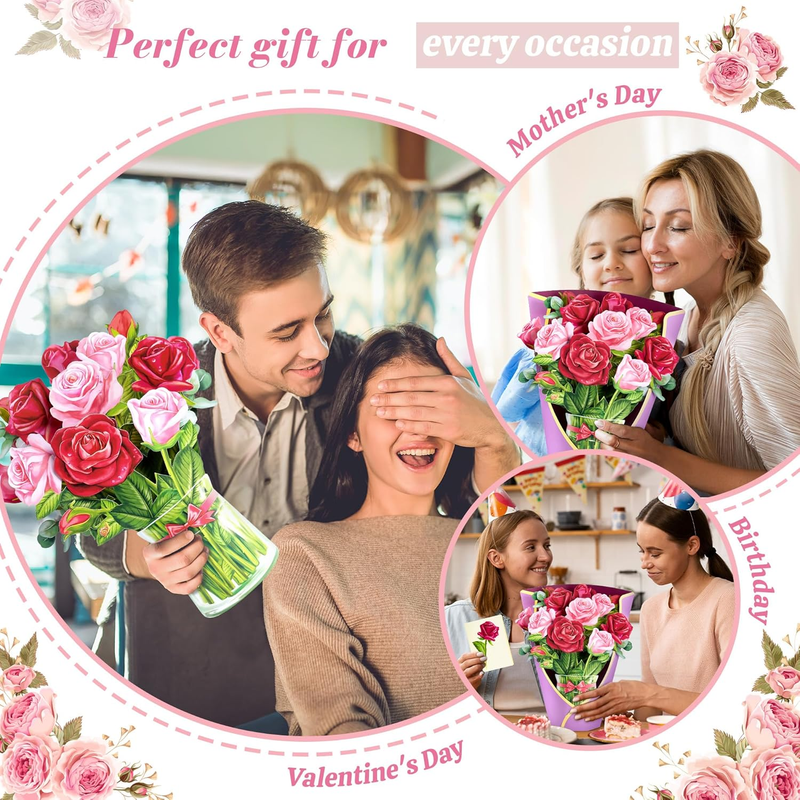 Pop up Flower Card, 3D Greeting Card ? Red Rose Bouquet ? for Wife, Girlfriend ? Romantic Gift for Anniversary, Valentine?S Day