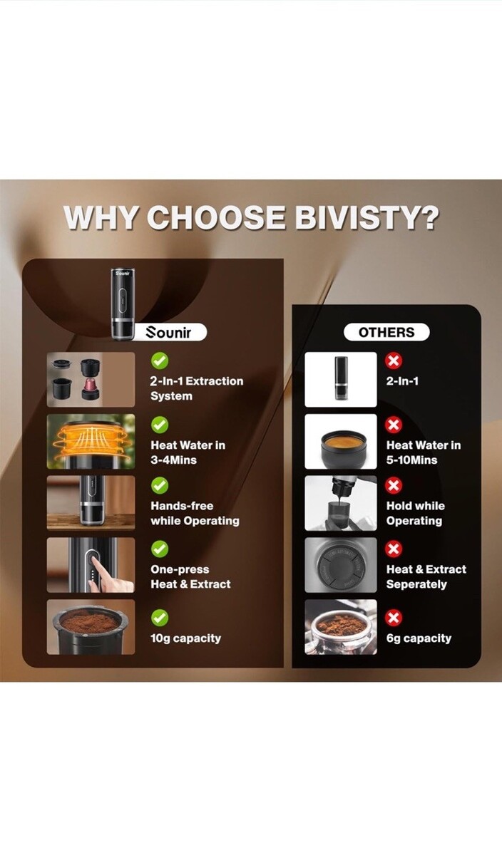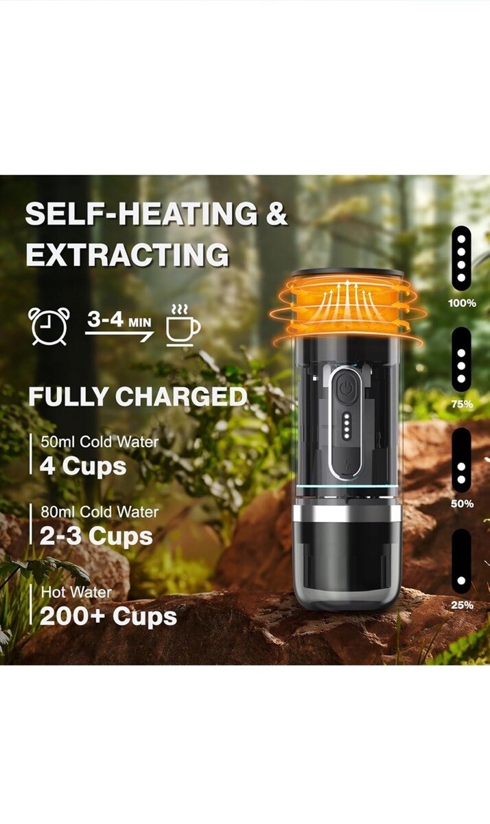 - Portable Electric Espresso Machine Rechargeable Self-Heating Coffee Maker Travel