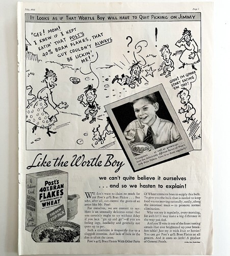 Post Bran Flakes Cereal Wortle Boy 1934 Advertisement Full Page Comic DWU1