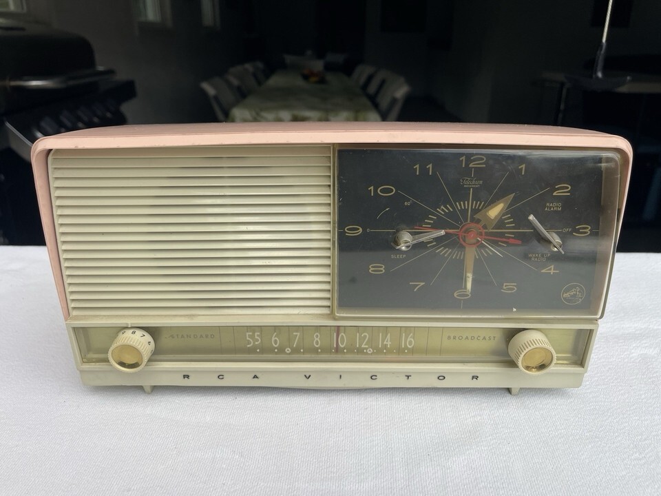 Powder Pink 1956 RCA Victor Model 8-C-7FE Vacuum Tube AM Clock Radio