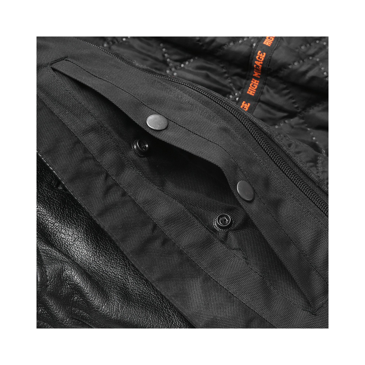 Top-grain Leather 2 snap Euro collar Zip down closure Inside wallet storage pocket Inside cell phone pocket Removable quilted liner Holds 2 spare clips 2 vents on the front Snap and zipper closure on sleeves for adjustability 2 outside pockets Fixed mesh liner 2 gun pockets Hook and loop closures on sides for adjustability