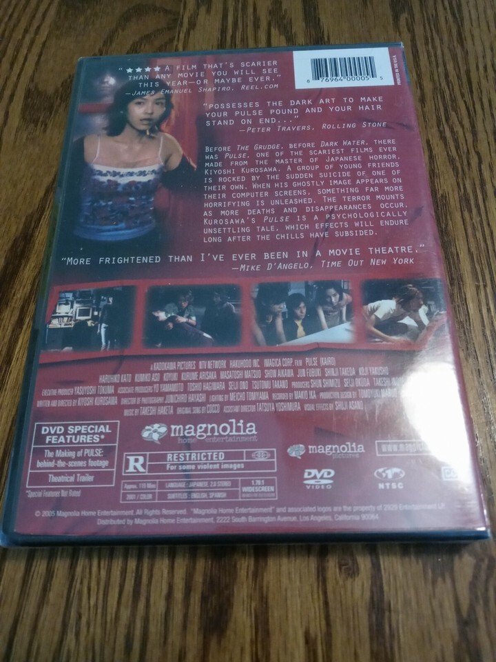 Pulse (DVD, 2001). Condition is "Brand New". Shipped with USPS First Class.New Condition ; See Pictures Attached For Exact Condition . Shipped with USPS First Class Mail . You Will Receive 1 ea DVD as shown in pictures attached. SHIPS N 24 HOURS Packed By Our Award Winning Packaging And Shipping Department Long Time E-commerce Seller For Over 20 Years LIMITED AVAILABILITY THANK YOU FOR SUPPORTING OUR FAMILY OWNED USA BUSINESS Collectible New DVD- DVD's Are Tested And Cleaned With Our Professional DVD Cleaning Equipment Before Shipped - Ships Immediately - Great Product at a Unbelievable Price - Your Chance To Own This Collectible DVD Before Its Gone Inventory Box #6315