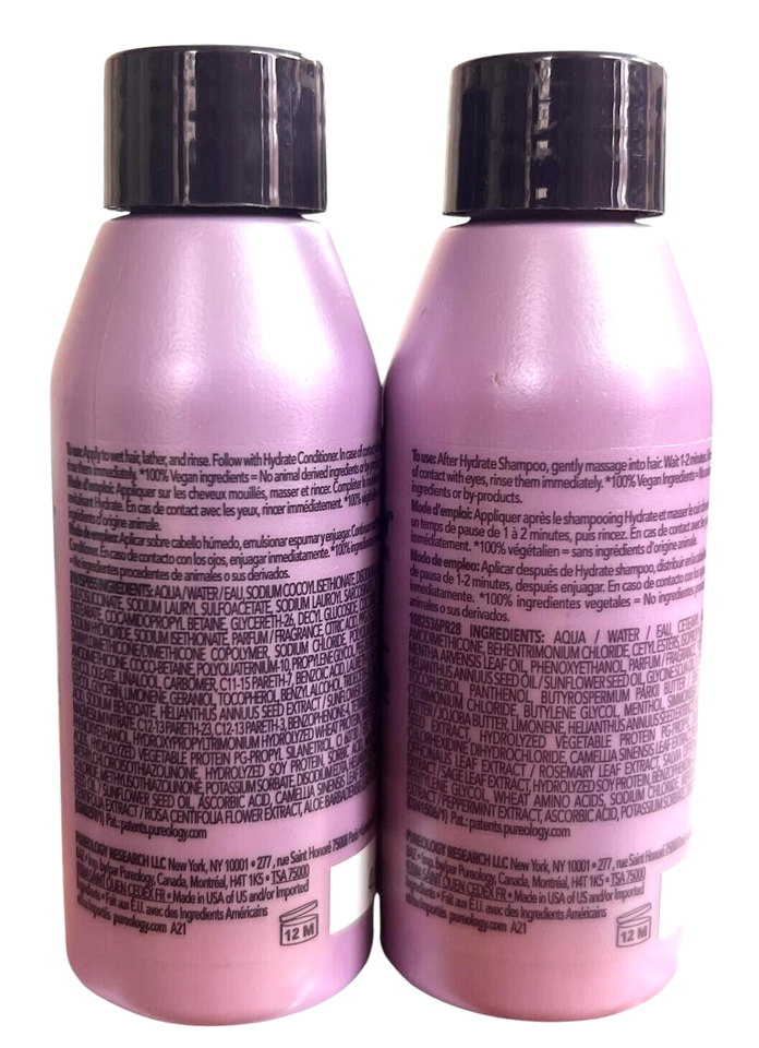 Pureology Hydrate Shampoo & Conditioner, 50mL / 1.7 oz Duo FREE SHIPPING