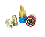 Blue R1234YF Low Side Quick Coupler: Low side R1234yf coupler 14 mm female x 1/4"SAE male. R12 to R134a Adapter Connector: 1/4" SAE female x low pressure 13mm R134A quick coupler.