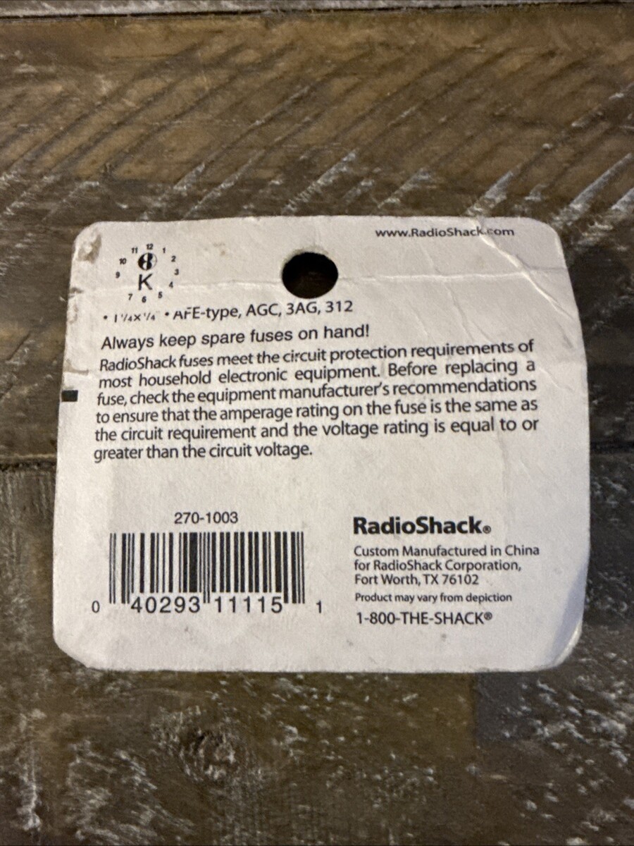 - RadioShack Fast-Acting 1/2-Amp 250-Volt Fuses #270-1003 Pkg. of 4