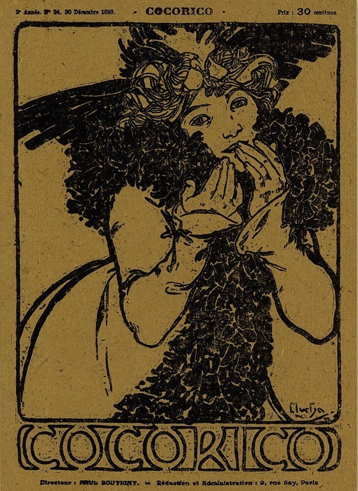 COCORICO: The painter Paul Boutigny, admirer and friend of Alphonse Mucha, decided to put on the market at the end of the year 1898 the "most artistic and literary humoristic journal" which takes the "defense of the Art Nouveau" to be "luxurious but affordable". These are the words published as the profession of faith of the first issue that came out of the press on December 31 in Paris.