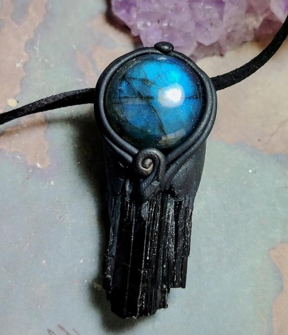 - Raw Tourmaline Labradorite Necklace Spiritual Pendant Lightworker for Sacred Pow