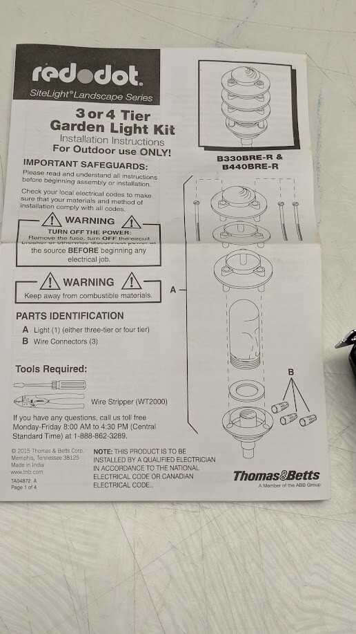 Item Condition Opened box - box shown has some wear. In excellent condition. Opened but never been used. Includes hardware with user guide manual. We have inspected this item for basic functionality. Item Location Ships from our warehouse in Las Vegas, Nevada, 89102, USA Fast Shipping We handle all paid orders within 1 business day. Best Offers Accepted Offers are reviewed at the close of business each night. We accept reasonable offers for - Multiple units of the same item - Errors or condition changes within our listing - Combining shipping for 2 or more separate orders Return Policy We offer a 30 day return window from when you receive the item. Items must be in the same condition and in original packaging. Seller Warranty - We Protect Against Defects Our in-house technicians evaluate and refurbish every electronic item we list. We are proud to offer our customers a 30-day warranty against defects. Contact us directly by selecting "I have a question about using my item or I want to send the seller a message." We are eager to hear from our customers. Product Description The Outdoor 3-Tier Pagoda Light is great for providing accent and ambient lighting for walkways, paths, driveways, gardens, terraces, patios and pool areas. This light features an attractive finish that beautifies your property and compliments many decors. It can be used for security lighting at the ground level. Accepts bulb type A19 75-Watt maximum. Use to light pathways, patios, gardens, driveways Suitable for wet or damp locations Light fixture is made of durable die cast zinc allow Glass globe is made of lime crystal glass which is durable yet attractive Bronze powder-coated finish matches most outdoor decors PVC ground tube provides an innovative installation method saving costly labor and traditional installation materials (ground installed fixtures) UL-listed fixture is weather resistant and suitable for use in wet locations