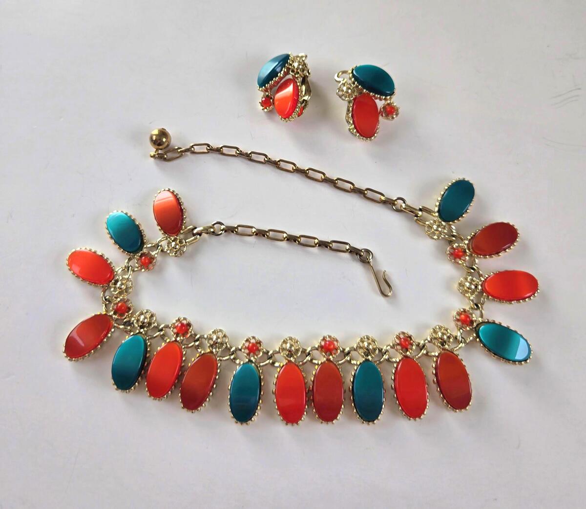 - Red Green Thermoset Choker & Earrings | Christmas Party Mid-Century High-End