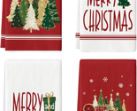 Red Sleigh Star Xmas Tree Merry Christmas Kitchen Towels Dish Towels, 18X26 Inch Farmhouse Holiday Winter Decoration Cleaning Set of 4