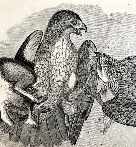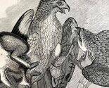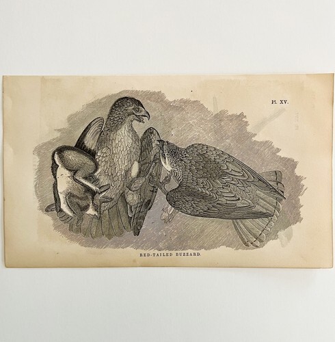 Red Tailed Buzzard With Prey Victorian 1856 Bird Wood Engraving Nature DWT15