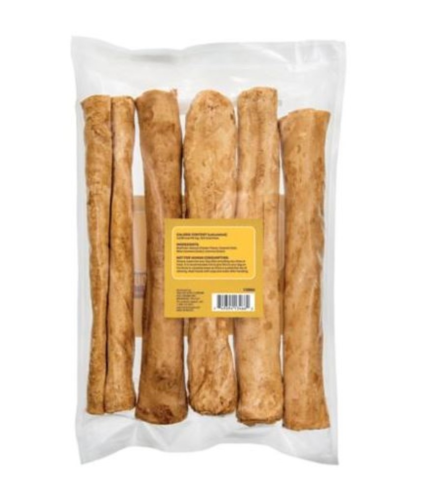 Pack of 5 chicken roll dog treats Large dog treats that help reduce plaque and tartar that can build up over time Hand-made and oven-baked for long lasting flavorful chewing This product is a treat and is intended for intermittent feeding only These Retriever dog treats are intended for use with medium and large breeds Package weight: 1.5 lb.