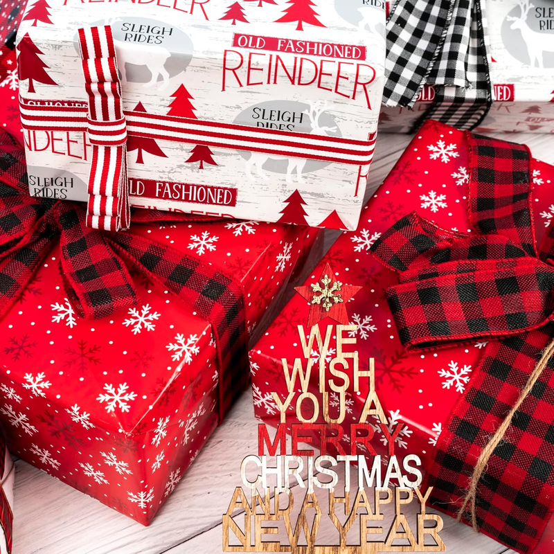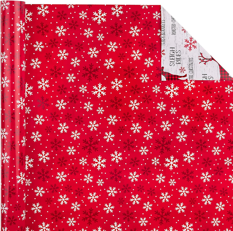 Reversible Christmas Wrapping Paper Roll - Mini Roll - 17 Inch X 33 Feet - Red W