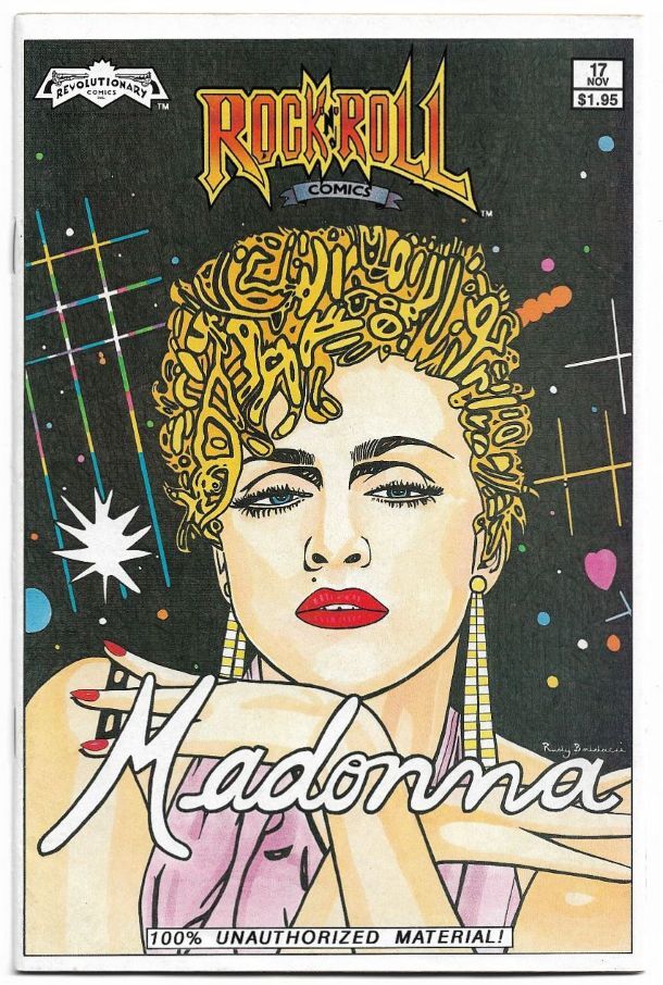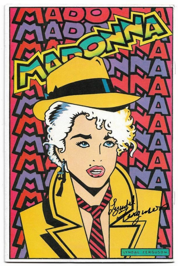 Description: Original cover price: $1.95. Direct edition. Front Cover Art Rudy Baldacci; Story by Todd Loren Greg Fox; Back Cover Art by Lyndal Ferguson. Signed by back cover artist lower right corner area back cover. Madonna satirical biography. KEY ISSUE: 1st cameo appearance of The Simpsons, one panel appearance in a back-up story about Paula Abdul. 32 pages, Full Color. 110525-110525T
