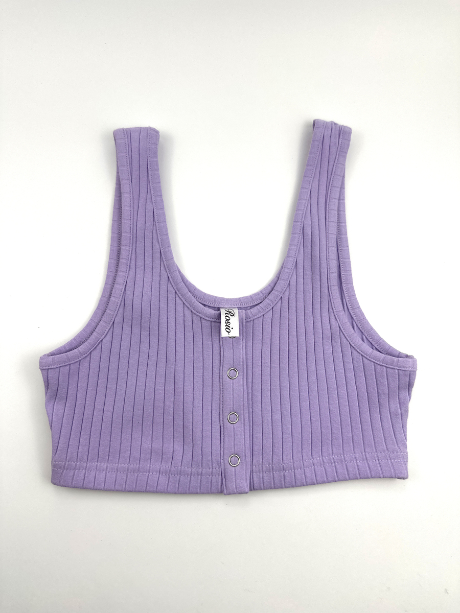 ROSIO PURPLE JUNIOR'S BUTTON CROP TOP SIZE: M