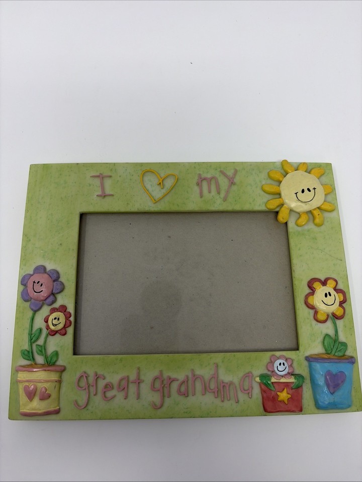 - Russ Berrie HandPainted I love My Great Grandma Smiley Face plants Pic Frame