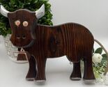Add rustic charm to your home with this handcrafted wooden bull figurine, featuring silver-painted horns and hooves, a rope tail, and a copper-tone bell. Its warm stained finish and simple hand-carved details give it a cozy farmhouse appeal ? perfect for a country kitchen, shelf display, or cabin decor.