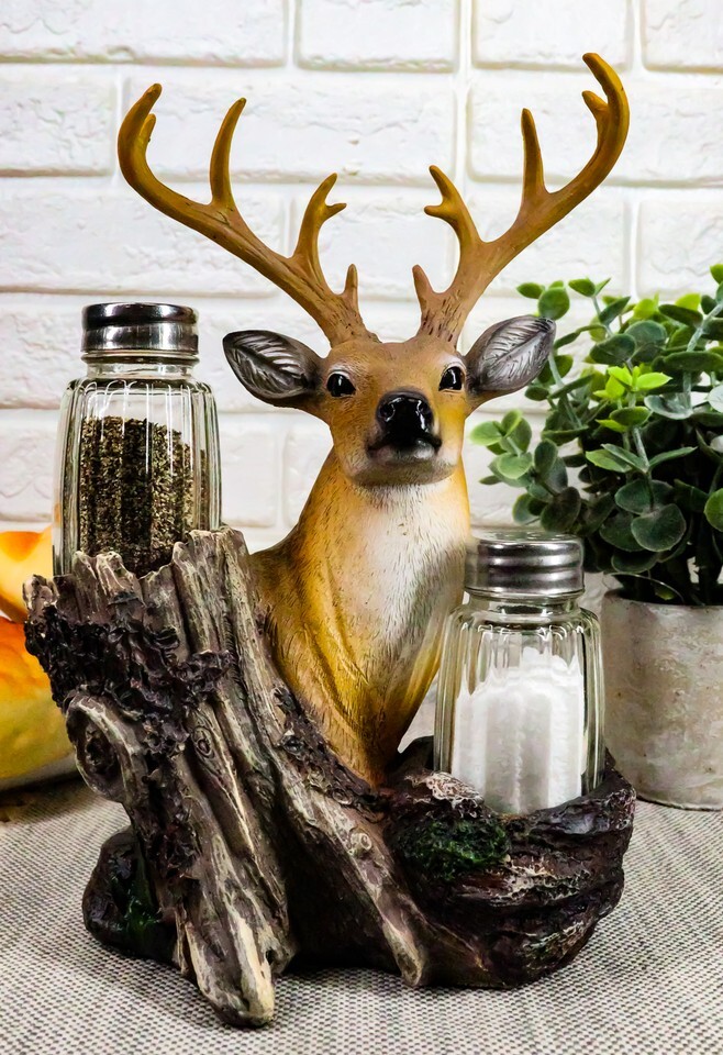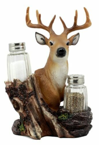 - Rustic Woodlands Wild Deer Big Buck Bust Figurine Salt Pepper Shakers Holder