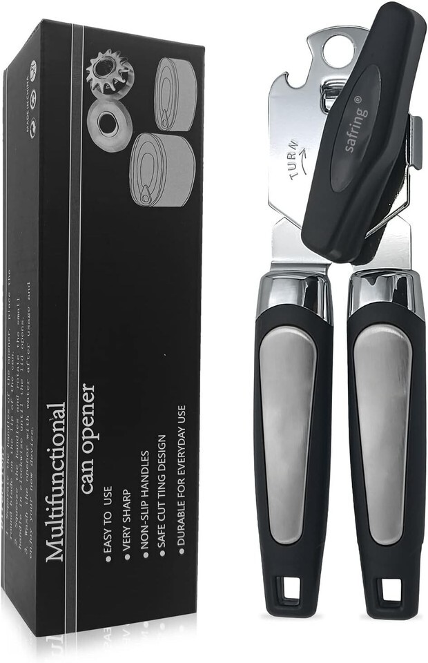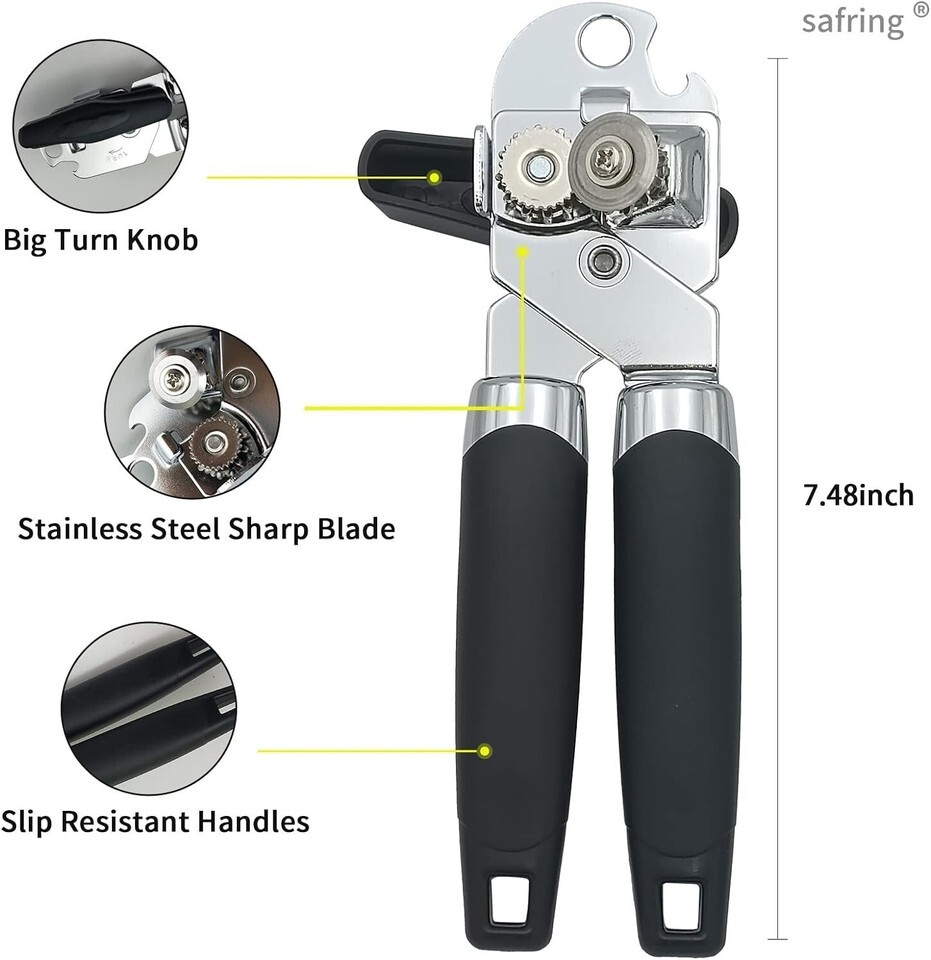 Safring Can Opener Manual, Handheld Strong Heavy Duty Stainless Steel Can Opener