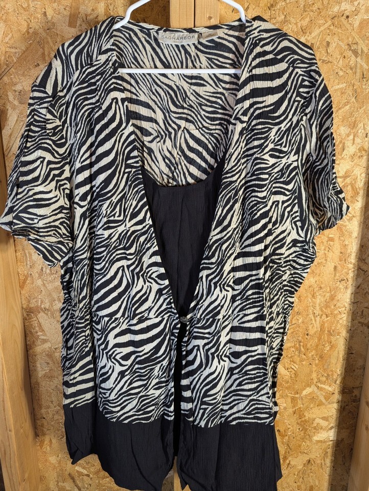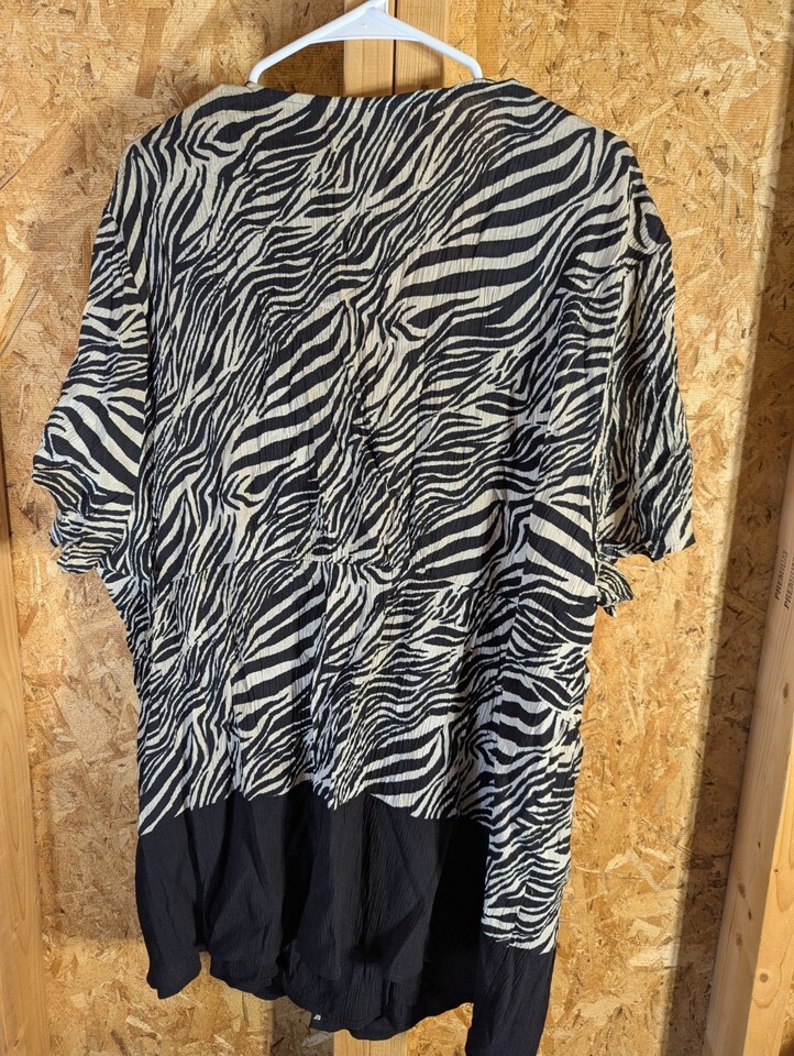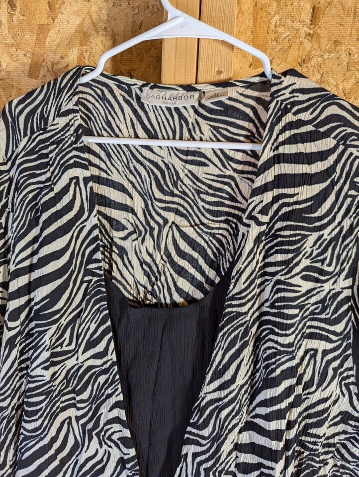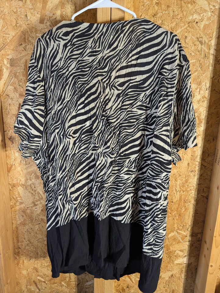 This Sag Harbor Size 3X Zebra Print Top is a stylish and versatile addition to any woman's wardrobe. Made from lightweight rayon fabric, this blouse features a trendy V-neck and short sleeves, perfect for wearing in the summer or fall. The animal print design adds a touch of fun and personality, while the pullover closure makes it easy to throw on for a variety of occasions like travel, parties, or business meetings. Whether you're looking for a chic top for spring or a comfortable option for winter, this Sag Harbor blouse is a fashionable choice for any season. 46" chest and 29" length