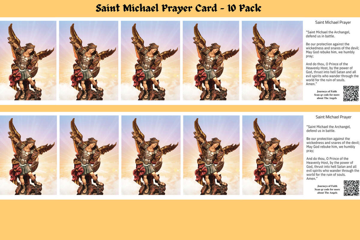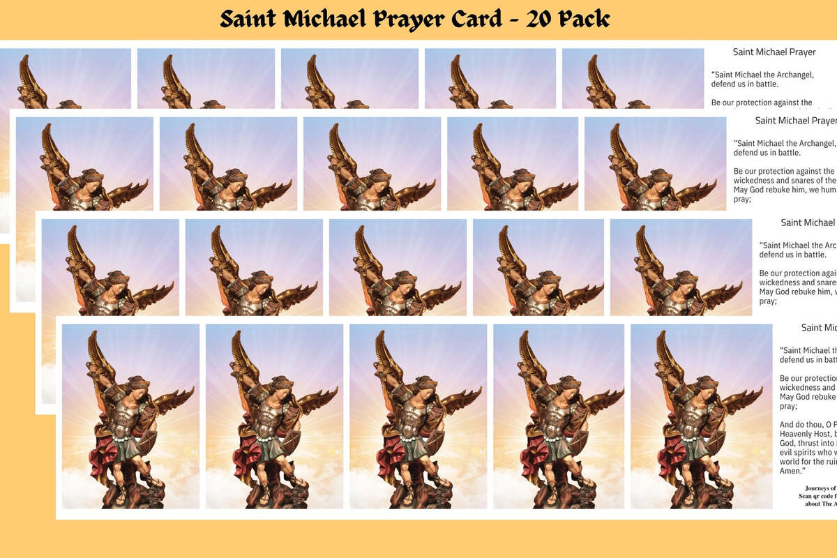 Saint Michael the Archangel, defend us in battle, be our protection against the wickedness and snares of the devil. May God rebuke him we humbly pray; and do thou, O Prince of the Heavenly host, by the power of God, cast into hell Satan and all the evil spirits who prowl about the world seeking the ruin of souls. Amen.