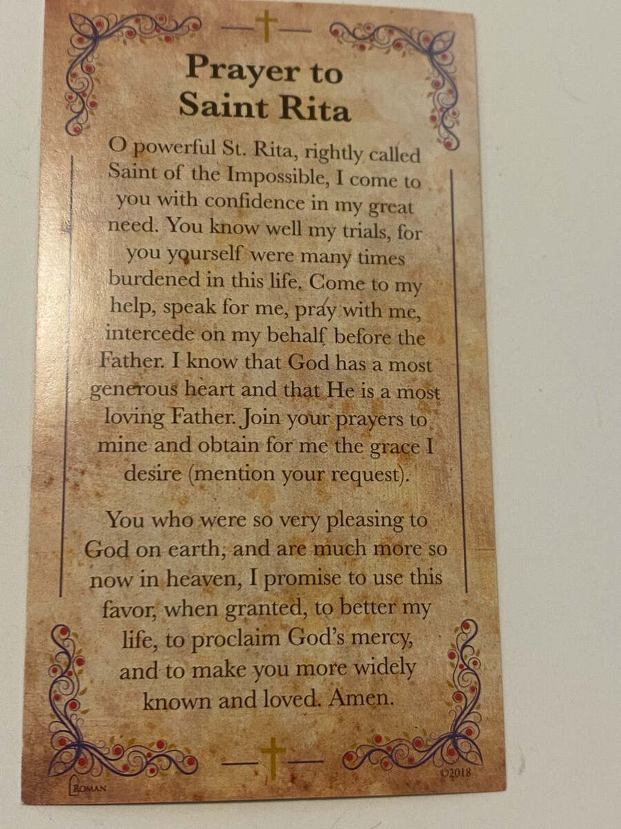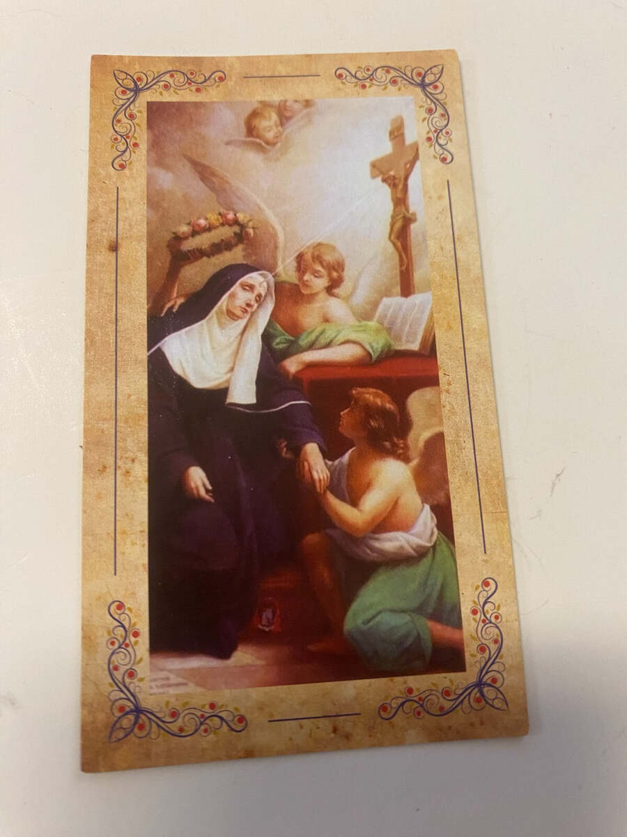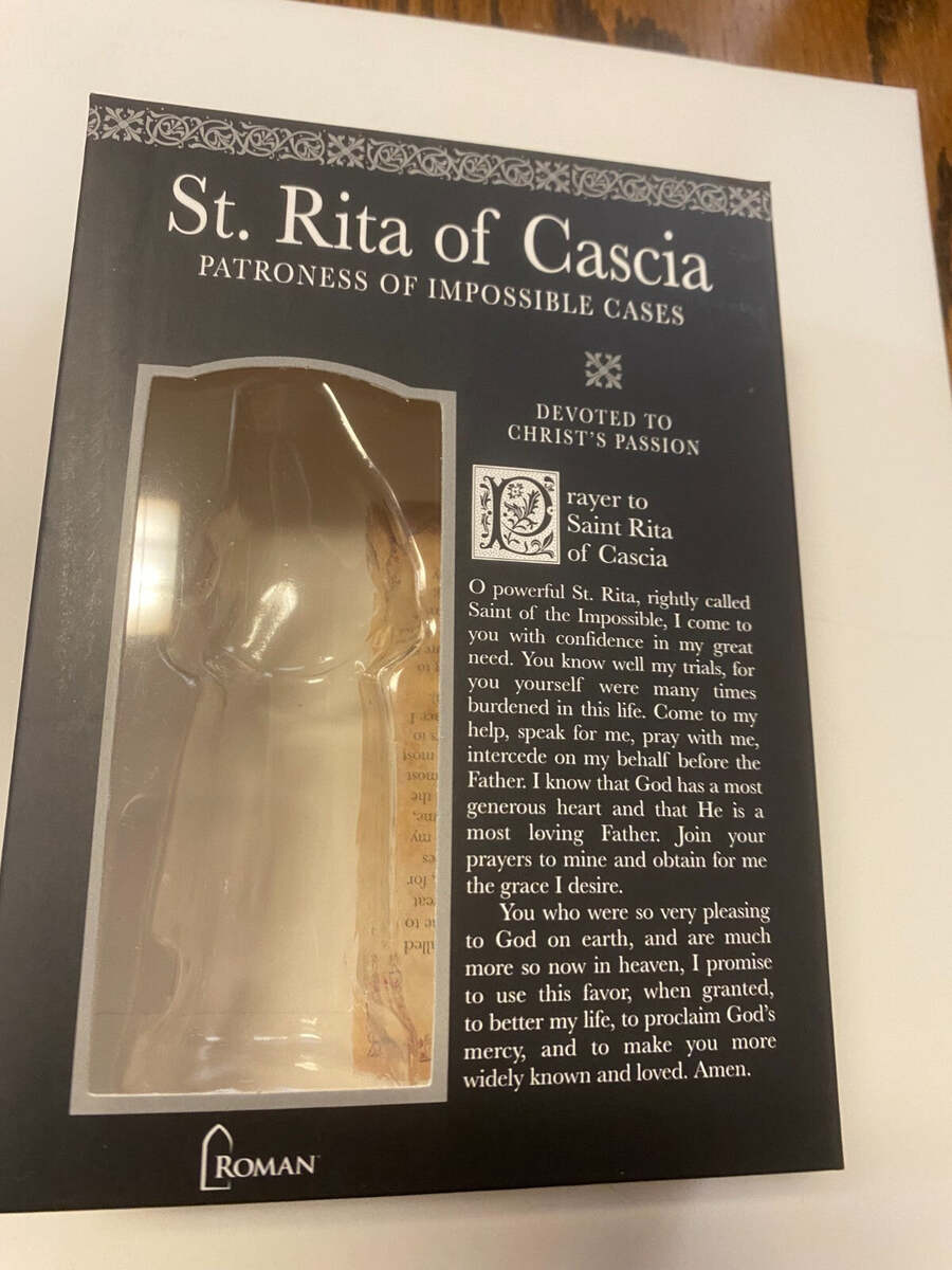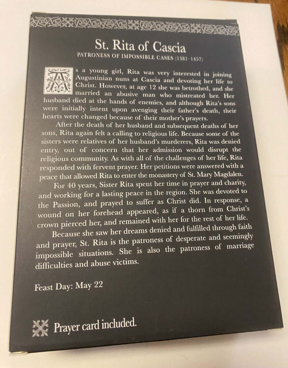 - Saint Rita of Cascia Small 3.75" Statue + Prayer Card & Bio, New #RM-05