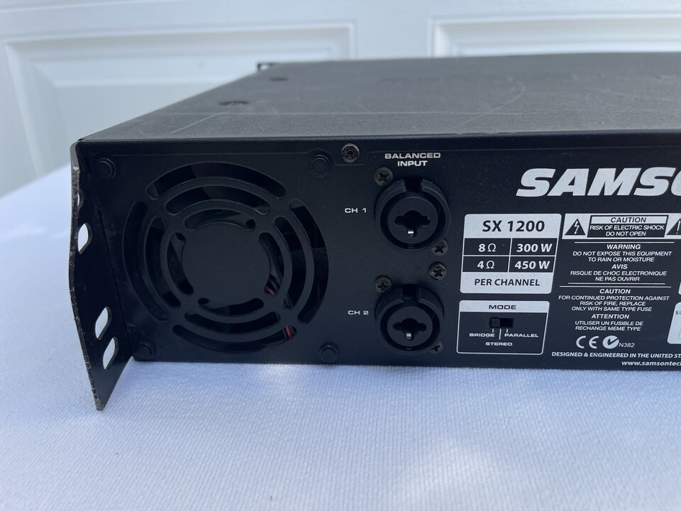 Samson Audio Power Amp SX1200 1200 WATTS. Condition is Used. Shipped with FedEx Ground or FedEx Home Delivery.