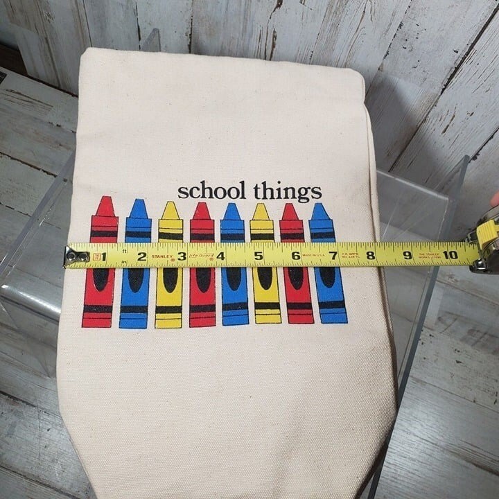 School Things Canvas Drawstring Lined Bag Crayons Red Blue Yellow Student. Great bag, plastic lined so those Crayons or markers and won't ruin the bag. If you have any questions, please don't hesitate to ask. It comes from a smoke-free home. Shipping quote is only for the lower 48 states, outside of that, please contact me for an accurate shipping quote.