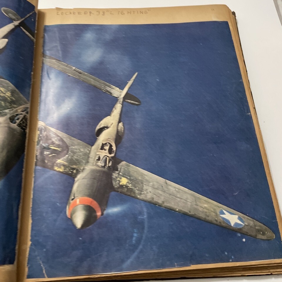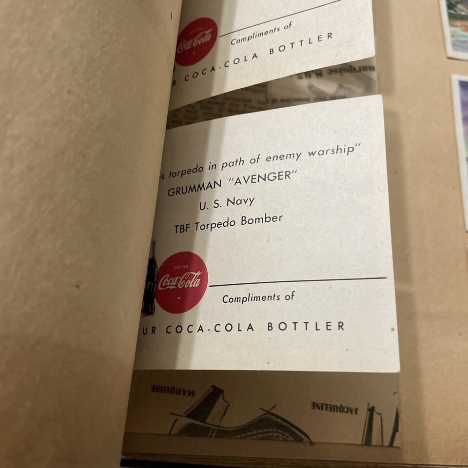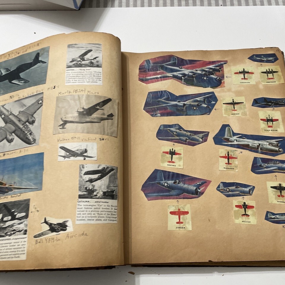 There are about 30 pages double sided of clippings from magazines, a tiny bit of hand drawings, there are little prints of airplane lithos from Coca-Cola and one photo in the back.