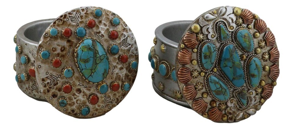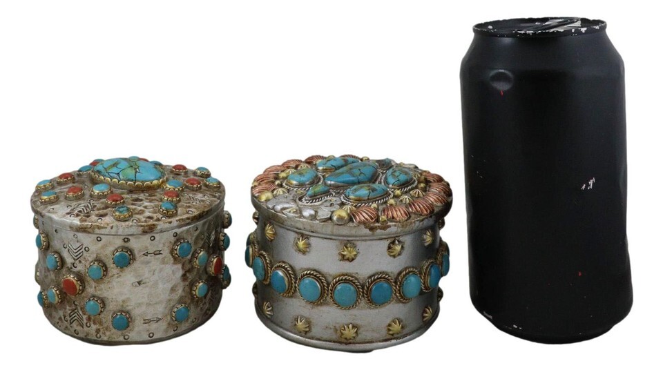 - Set Of 2 Southwest Rustic Turquoise Red Rocks And Stones Vintage Trinket Boxes