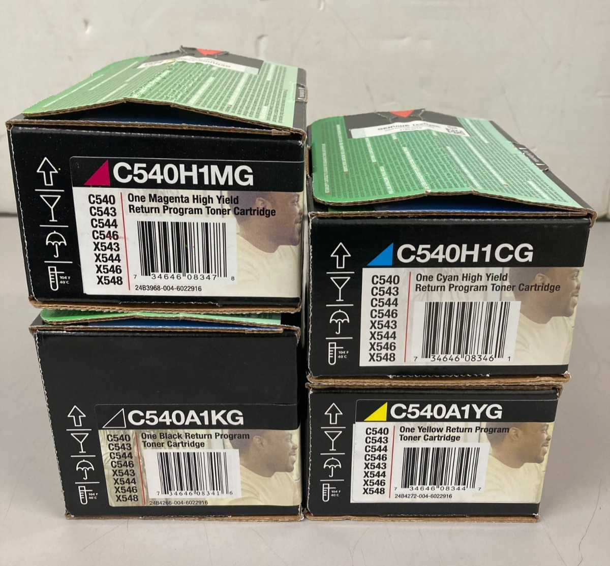 - Set Of 4 Lexmark Toners C540A1KG C540H1CG C540H1YG C540H1MG New Sealed