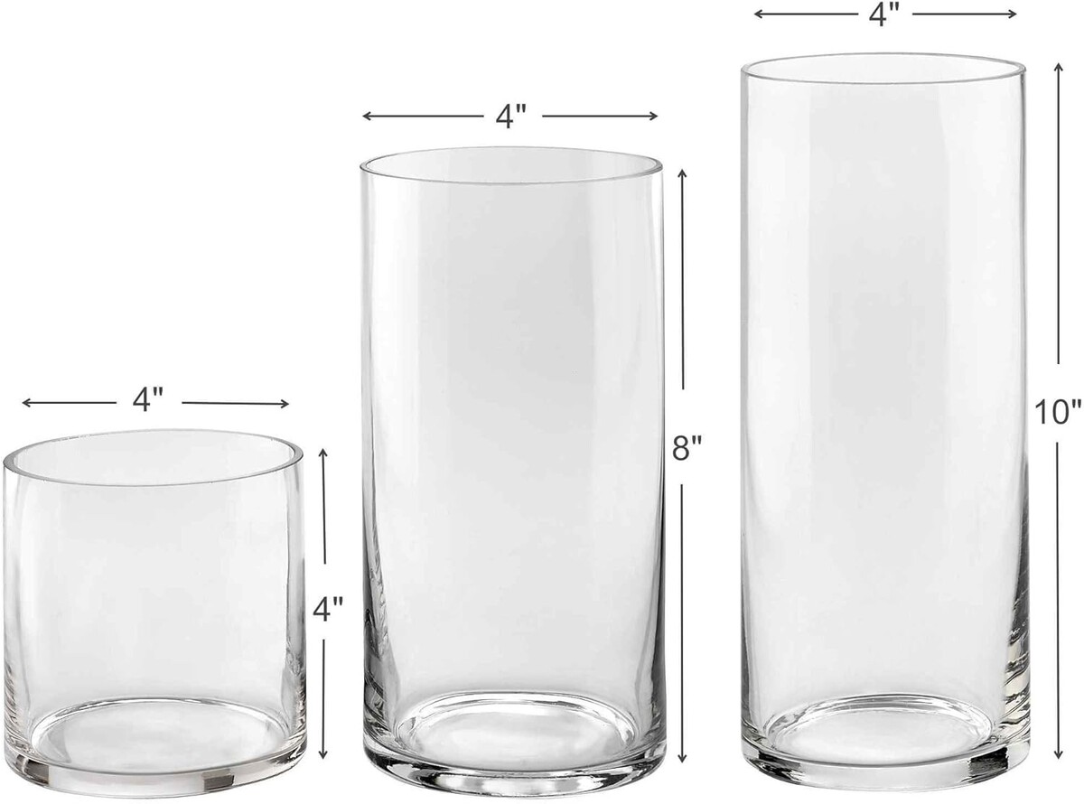 Set of 3 Glass Cylinder Vases 4, 8, 10 Inch Tall Pillar Candle Holder Flowers