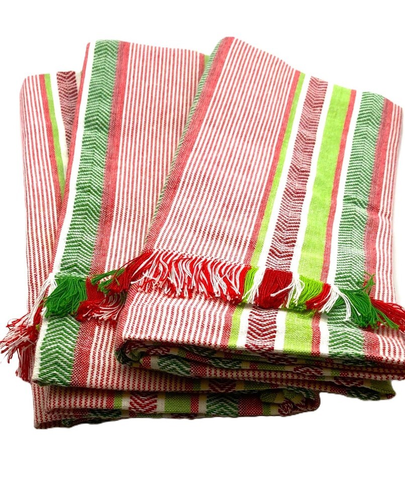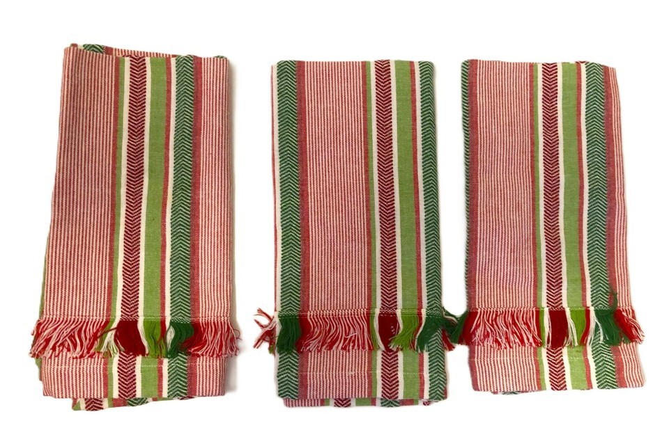 Set of Three Tag 20" x 20" Christmas Holiday Kitchen Hand Towels Red, White Green Stripe. I do offer calculated shipping in cart when you purchase multiple items from my shop.