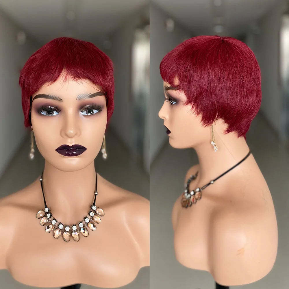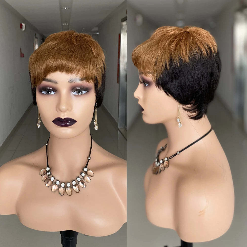 - Short Straight Human Hair Wigs Natural Color Brazilian Remy Hair Pixie Cut Wig C