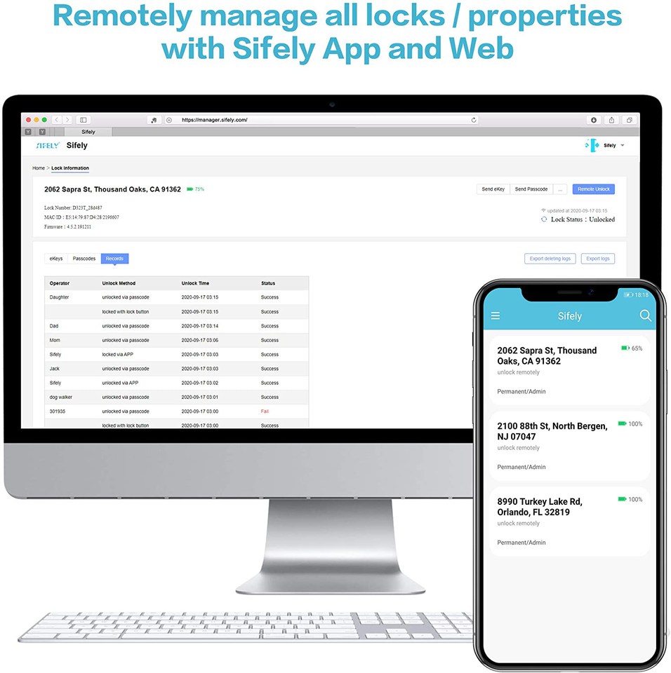 ??Remote Control / WiFi Access?Paired with Sifely WiFi Gateway (Optional Add-on, Sold Separately), you can lock/unlock your smart door lock anywhere anytime, set up codes remotely and check real-time access logs.