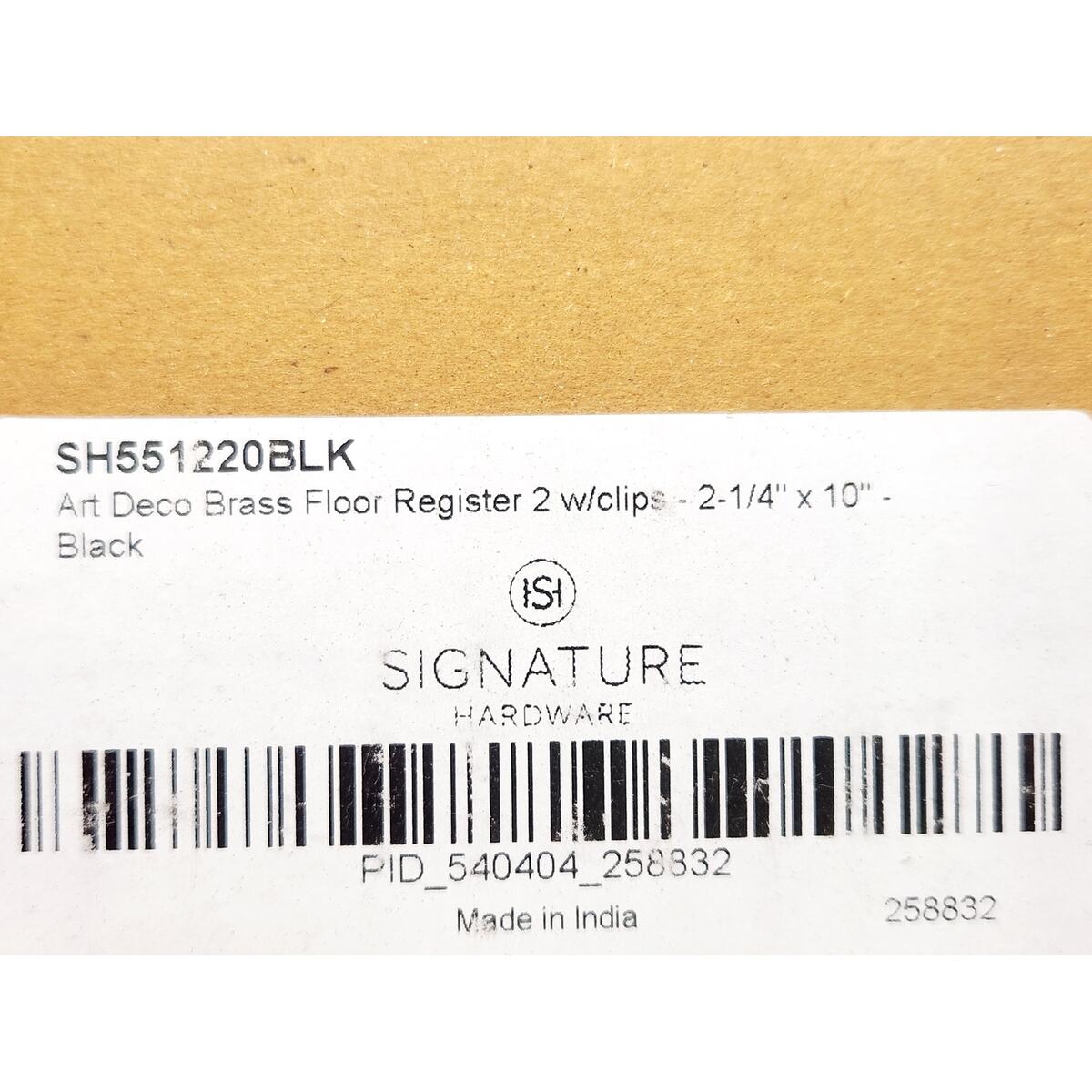 Thank you for visiting! All orders are shipped for FREE within the United States. For international sales, shipping costs will be added to the purchase price. Please contact us with your shipping address for a parcel quote. Orders before 2PM CST will be shipped the same day. Our items have never been installed and are sold as open-box products, unless otherwise noted. While the boxes may have slight damage, as shown in the pictures, the items themselves are carefully inspected to ensure they are not damaged or missing any pieces. We accept returns on items that have not been installed or damaged within 14 days of your purchase. In the rare event that an item is defective upon installation or has any blemishes not previously stated in the description, we will discuss a refund or exchange. Please, reach out if you have any issues that need to be addressed. Our goal is to achieve complete customer satisfaction. We appreciate you viewing this listing and look forward to serving you. Signature Hardware 478661 Deeken 11-1/4" x 3-1/2" Floor Register - Black Embellish your home with the Deeken Brass Floor Register. Designed with an elegant art deco pattern, this piece includes adjustable louvers to direct airflow according to your preferences. Its tarnish-resistant surface comes in various finishes, including two-tone, making it the perfect option for adding mixed metal detail to your space. Easy to install, sizes 4โ€ and below come complete with clips, while the 6โ€ pre-drilled options include mounting hardware. For use with floor installations Constructed of brass To determine size needed, measure air duct opening rather than old register or grille Duct Size: 2-1/4" x 10" Length: 11-1/4" Width: 3-1/2" Installation Location: Floors Material: Brass