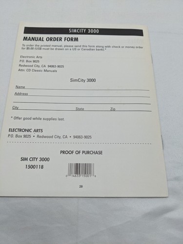 Sim City 3000 PC Video Game With Install Guide. Combined Shipping (for USA Customers Only)