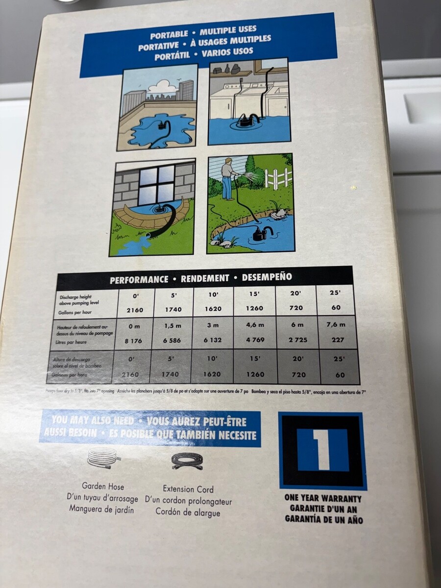 The Simer 2355 Submersible Utility Pump is a reliable and efficient 1/3 horsepower pump designed for universal installation. With a depth of 7.5 feet and a weight of 10.01 pounds, this pump features a plug-in design with a cord length of 8 feet, making it easy to use in various plumbing and gardening applications. The pump is equipped with thermal protection, continuous duty cycle, and operates at a rated voltage of 115V AC. Backed by a one-year manufacturer warranty, the Simer 2355 Utility Pump is a durable and dependable choice for your home improvement needs.