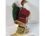 Bring a whimsical touch of the winter season to your home with this delightful skiing Santa Claus ornament. Dressed in a rich maroon coat trimmed with fluffy faux fur and a matching hat, Santa is ready for his snowy adventure with his skis and poles. A charming green backpack, adorned with festive pinecones, berries, and greenery, completes his adventurous look. This charming decoration is perfect for adding a touch of holiday cheer to your Christmas tree or as a special accent in your seasonal decor.