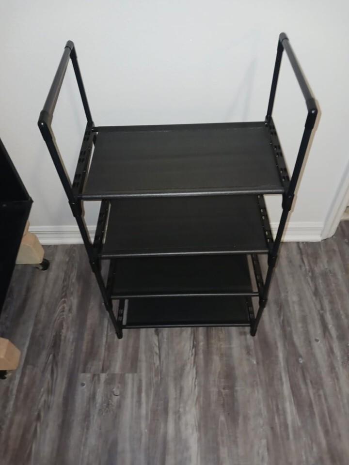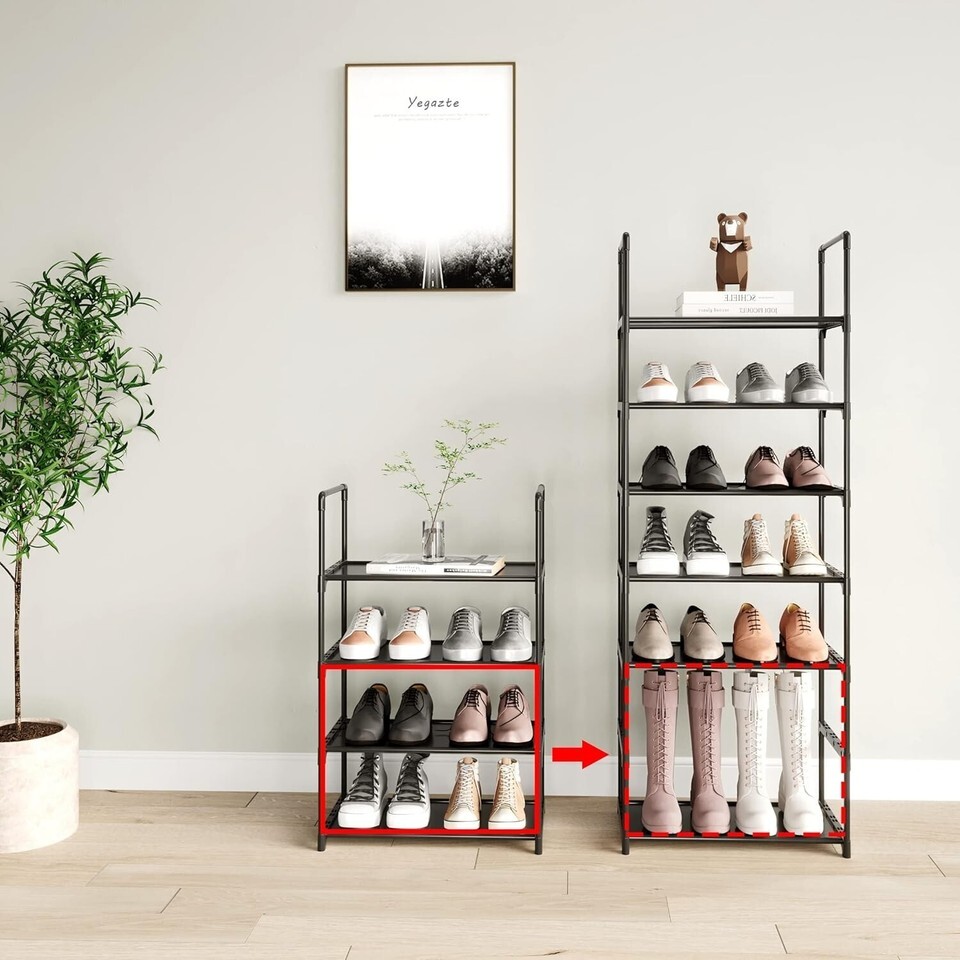 ?Upgrade with Handle? Stores up 8-10 pairs of shoes for men, women,kids with Handle easy to move.This stackable shoe rack is not only for shoes, It could be a display stand for your bag,books, plants and more.It also works great for kitchen food containers storage.This storage rack is a perfect choice for renters.