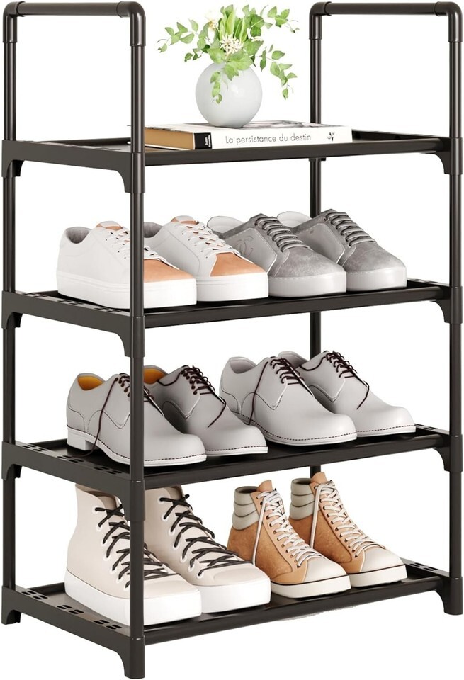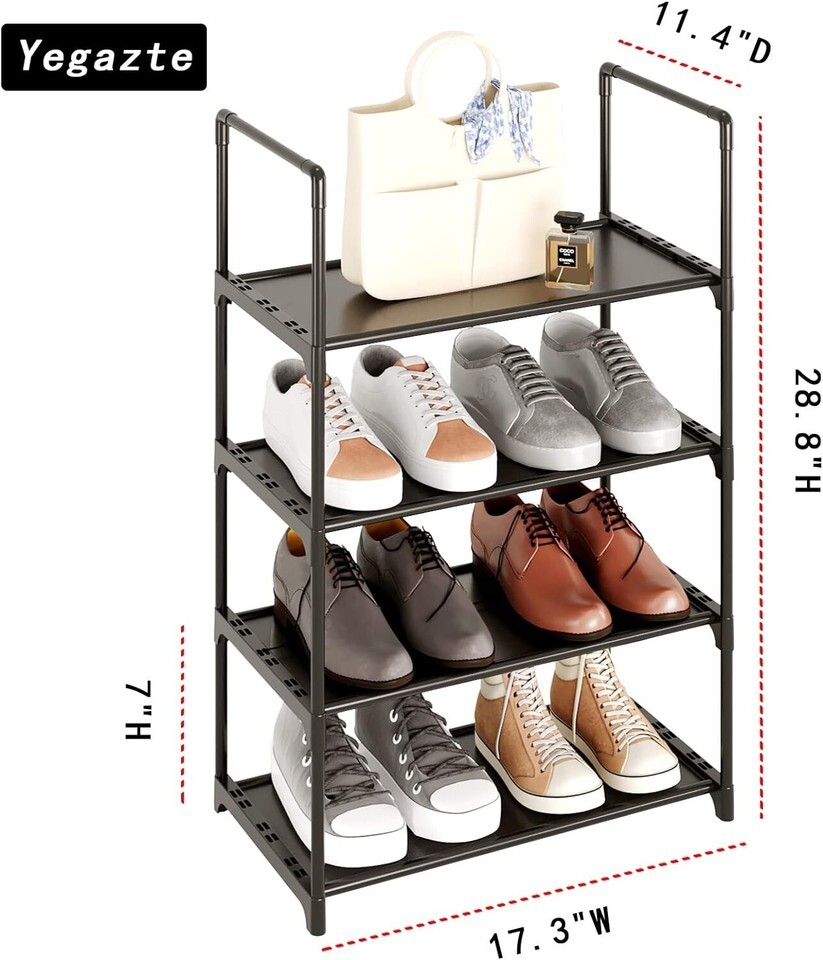Small Shoe Rack, 4-Tier Shoe Shelf Storage Steel 11.4"D x 17.3"W x 28.8"H