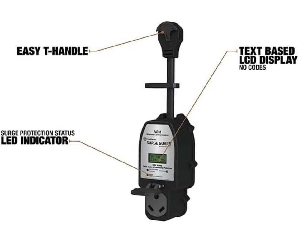 Open box and unused. Still in box see photos. box may have wear/tear Southwire 30A Wireless Surge Guard Portable Surge Protector Southwire Surge Guard 30 Amp Portable RV Surge Protector, 2450 Joules, 120V, 34931 Provides Protection Against: Power surges Open ground Open neutral Low ( 102V) / High ( 132V) voltage Overheating plug/receptacle