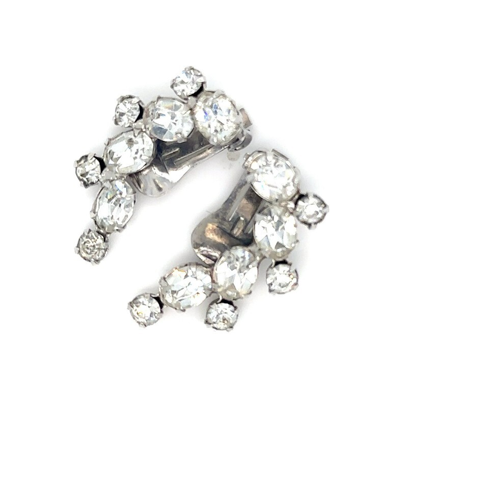 Chacun avec quatre grandes strass ovales et quatre petites strass rond avec des clips d'oreille en metal argente chacun signe "Weiss".