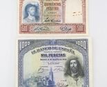 - Spain Peseta Notes (Lot of 2) 1931 500 Peseta VG+ p#84 1928 1000 Peseta F+ P#78a