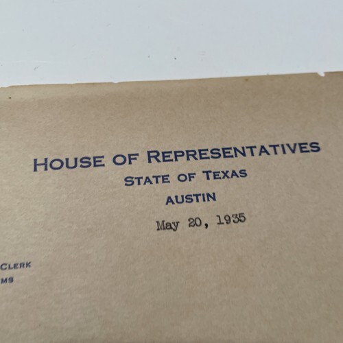 State of Texas House of Representatives Letter 1935 Jonnie Mae Watson.