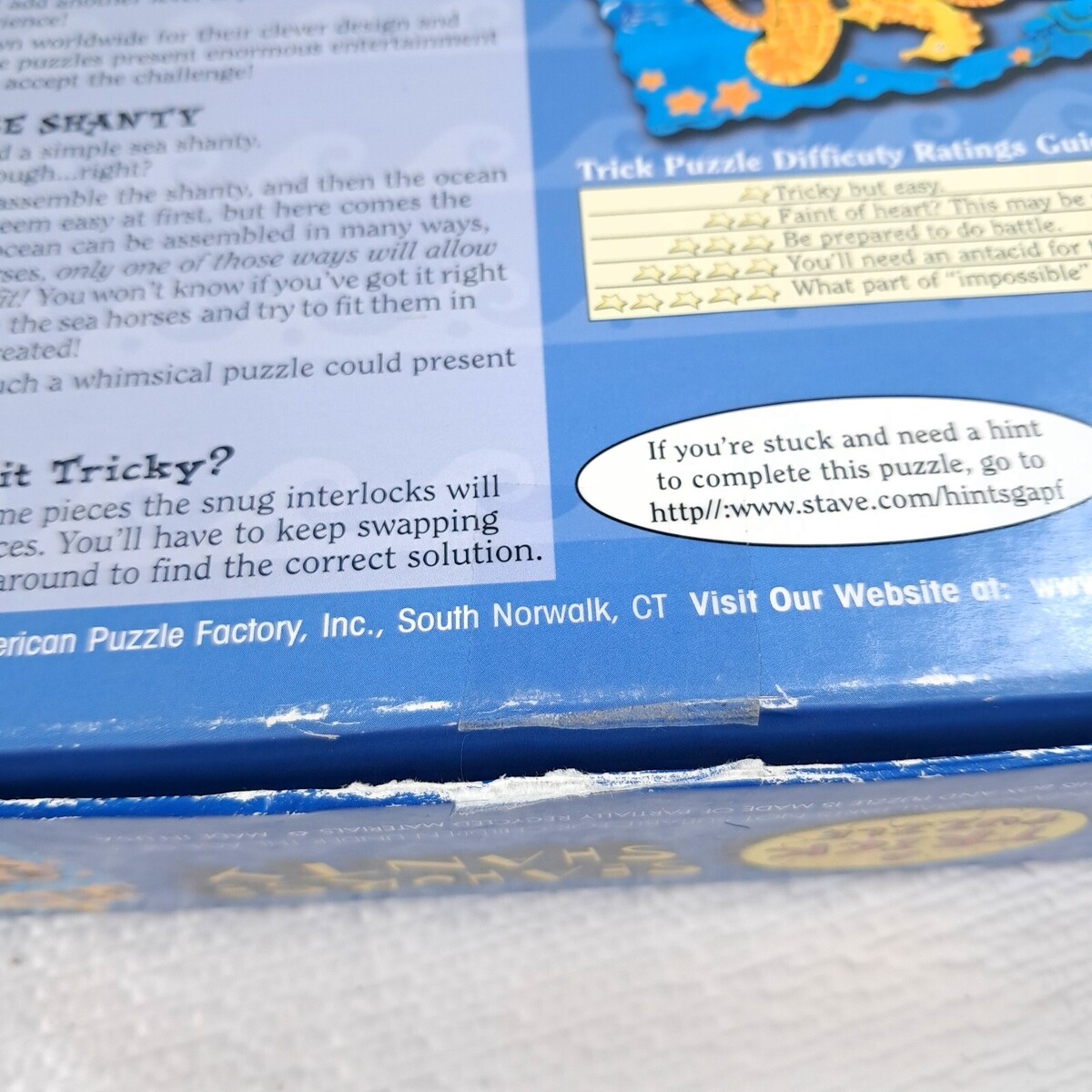 Stave Design Great American Puzzle Factory Seahorse Shanty A Trick Puzzle All pieces have been counted and the puzzle is complete. Box has wear as shown, but pieces are in very good condition.